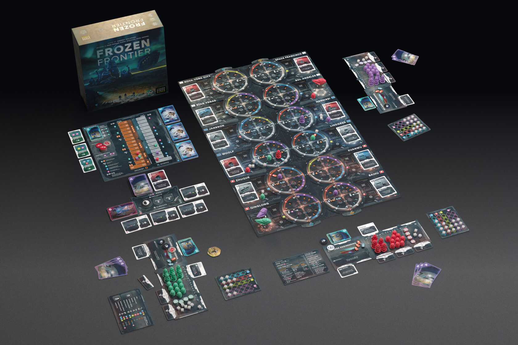 "FROZEN FRONTIER" is a highly strategic Eurogame for experienced players about the cosmic future of humanity. Manage your space corporation, develop colonies, create industry, implement AI, extract resources, and conduct research.